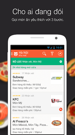 Cho dù bạn thích Pizza, Bánh mì, Sushi, Món Ý, món Chay, món Nhật hay các loại ẩm thực được ưa chuộng khác. Đảm bảo bạn sẽ có một bữa ăn được giao nhanh, nóng hổi và ngon tuyệt khi đặt món qua ứng dụng miễn phí của foodpanda. Đã có tại Ấn Độ, CHLB Nga, Brasil, Ba Lan, Ả Rập, Singapore, Pakistan & Đài Loan và nhiều quốc